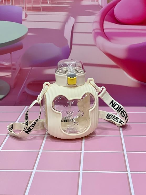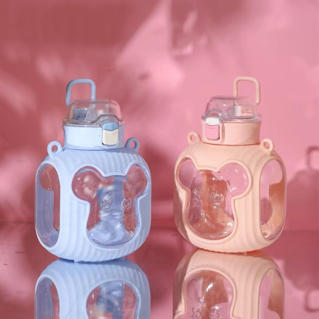 Teddy plastic Water Bottle Straw Cup Portable Outdoor Drinking School Cute Cartoon Shcool Water