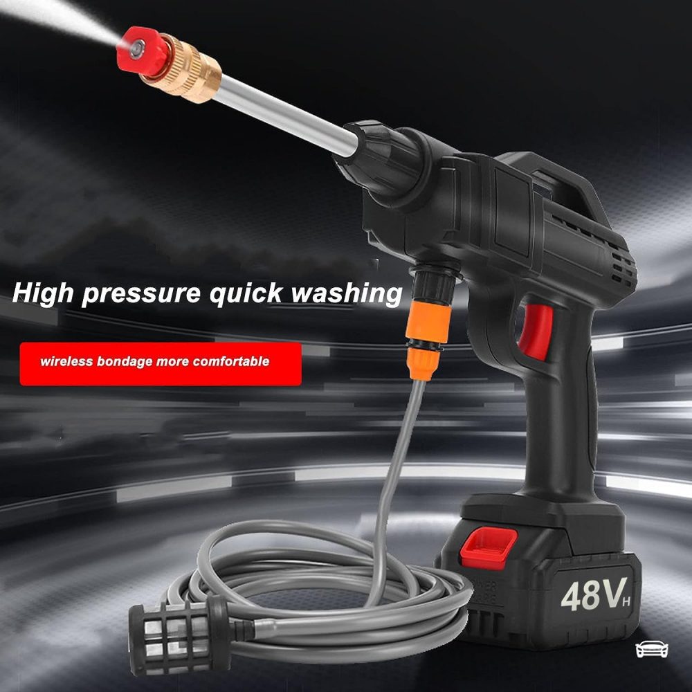 - Introducing our Portable Rechargeable Pressure Washer with 48V Batteries, the ultimate solution for convenient and efficient cleaning. This cordless pressure washer is designed to make your cleaning tasks a breeze while conserving water. With its powerful performance, adjustable nozzles, and practical accessories, you’ll have everything you need for versatile cleaning in one portable package.
